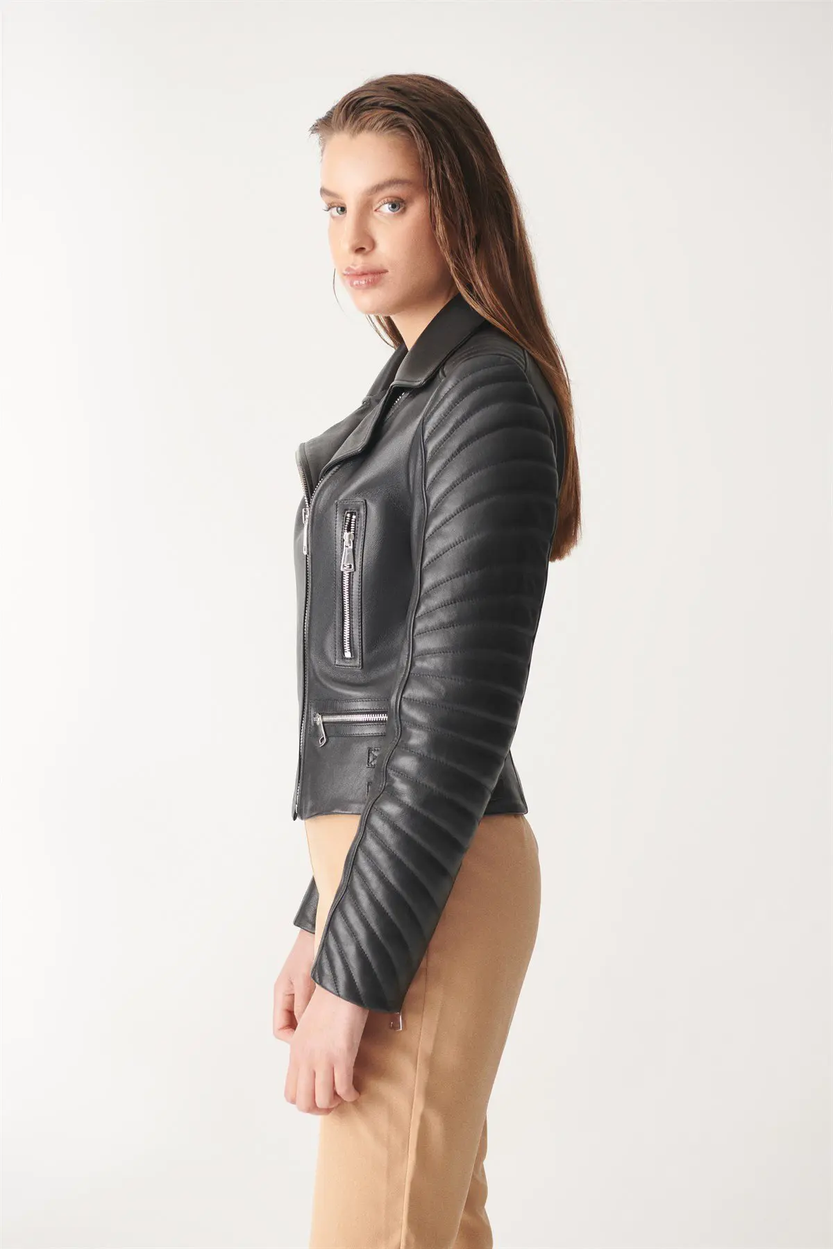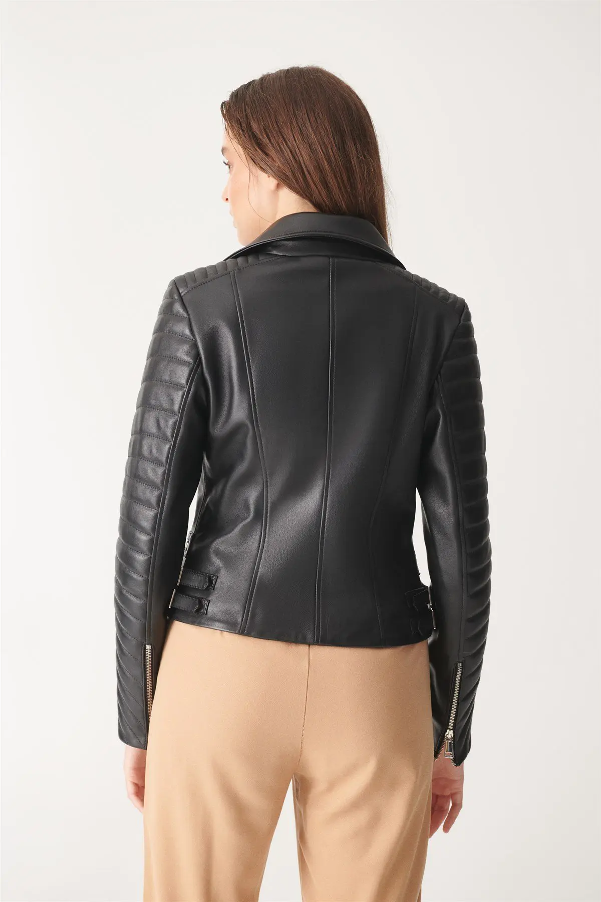 The Women Biker Leather Jacket EVA – Luxury Edition BIKER JACKET by ROYAL STYLISTE. This premium leather jacket is designed for the modern woman who values both style and Fashion. Crafted from soft & supple Lamb Leather, the Leather Trucker jacket combines luxurious comfort with superior durability. With a sleek, contoured fit, high-quality stitching and attention to detail reflect the ROYAL STYLISTE commitment to craftsmanship.