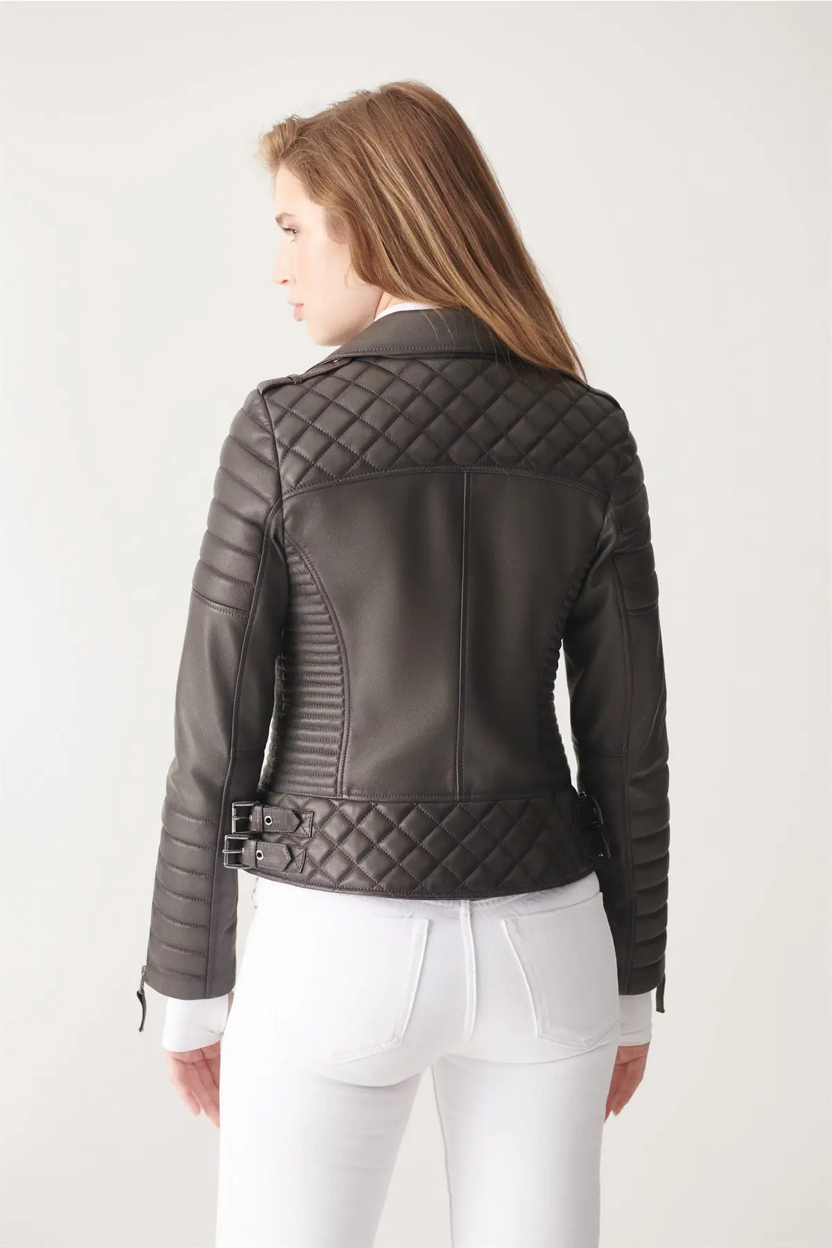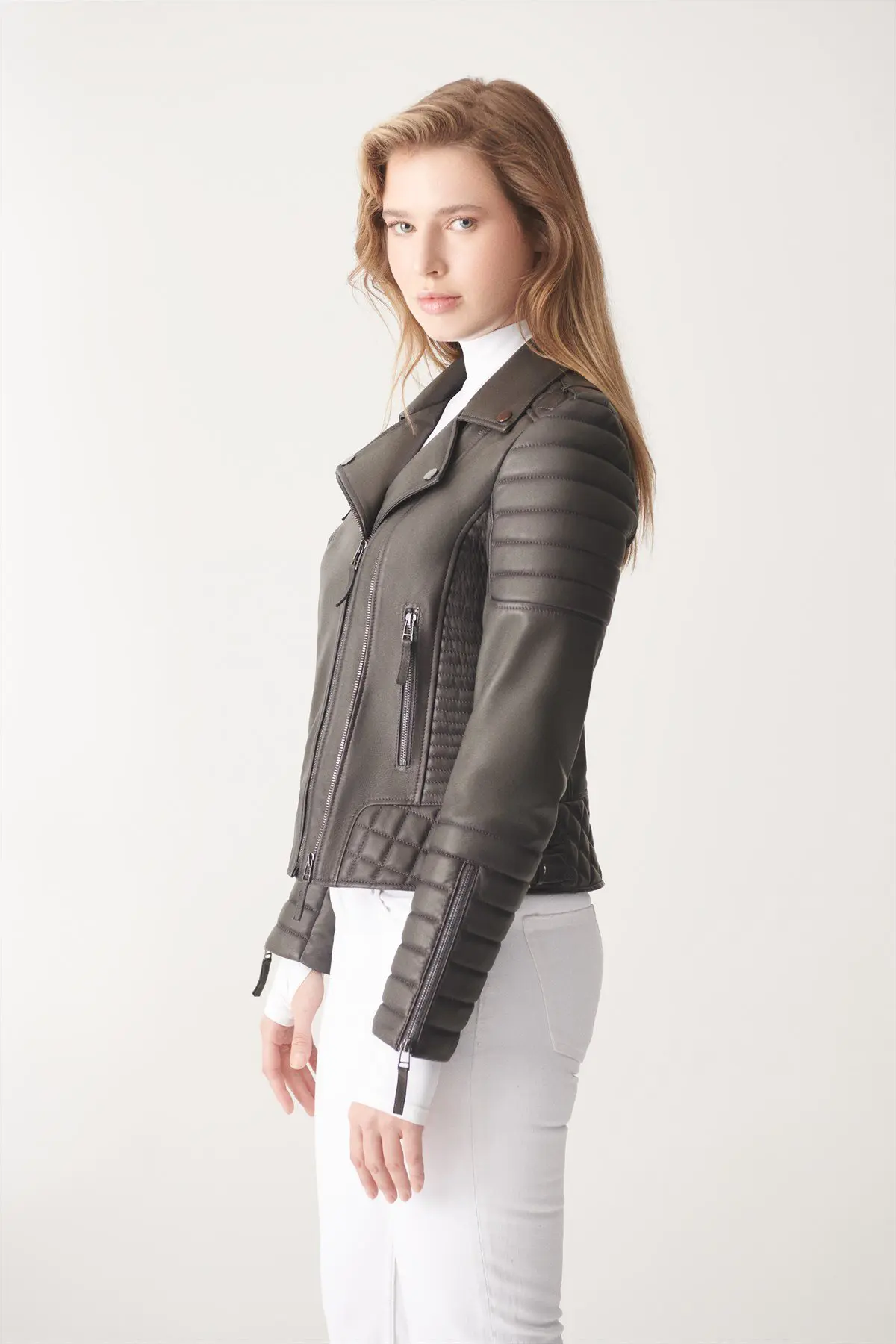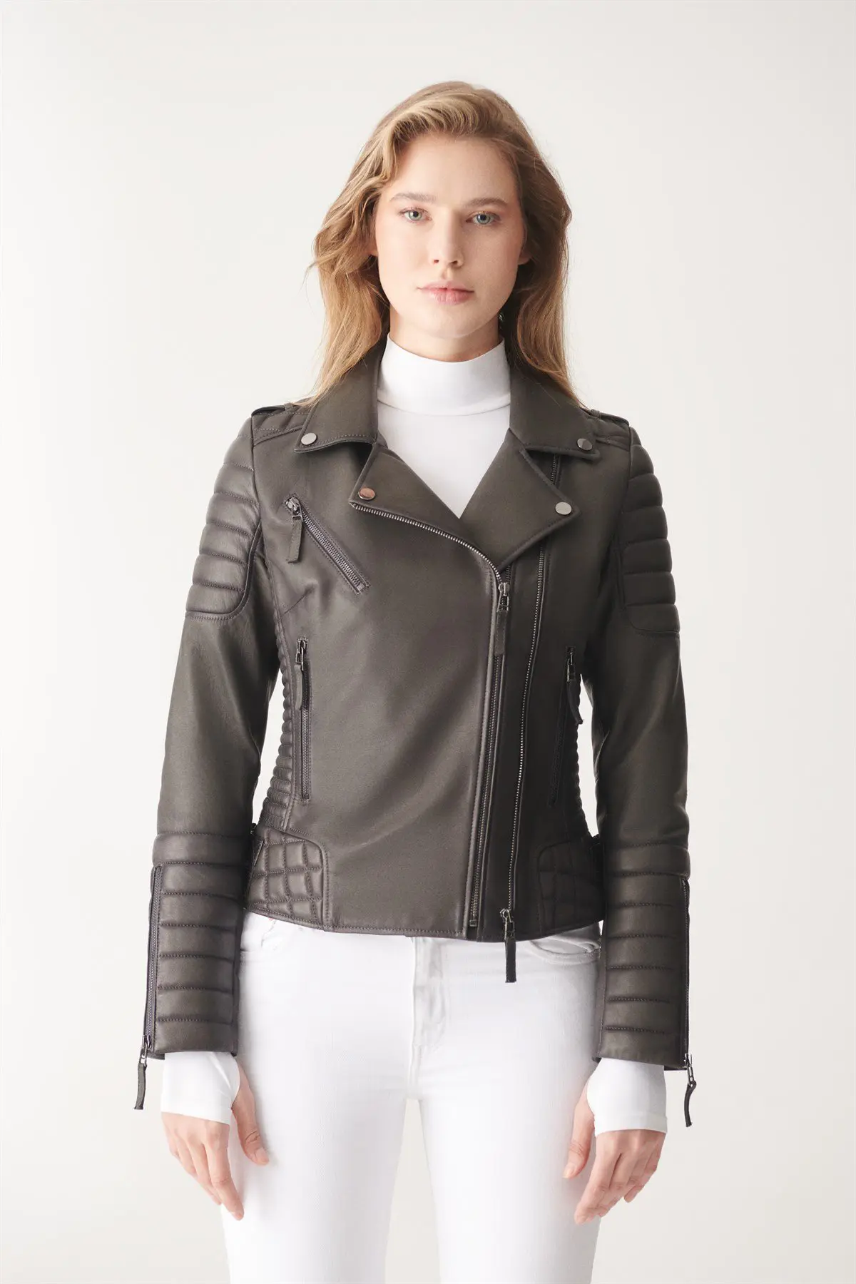 The luxurious design includes silver-tone hardware, an asymmetrical front zipper, and zippered cuffs, all adding a bold, yet feminine edge. Reinforced stitching and padded shoulders provide optimal protection without compromising on style, making it perfect for both long rides and casual outings. The soft, breathable inner lining ensures all-day comfort, while the adjustable waist belt offers a customized fit.