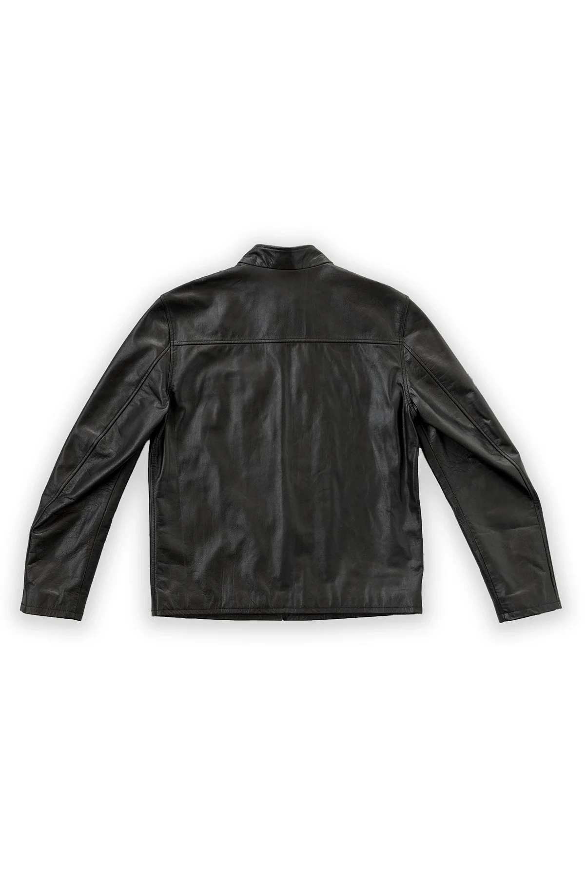 Leather Biker Jacket Classic Cafe Racer Jacket – Black