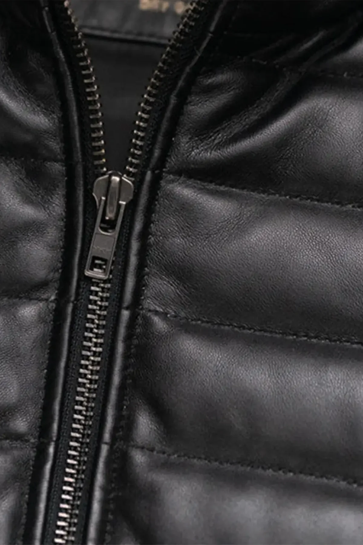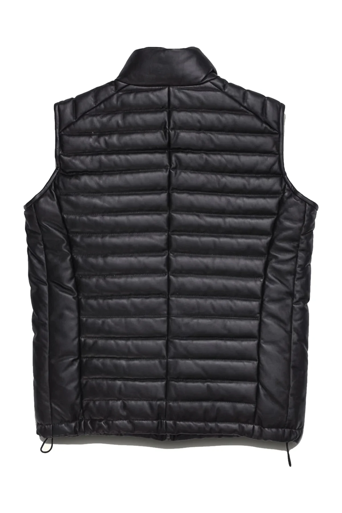 Leather Down Vest Vintage Leather Puffer Gilet – Black
