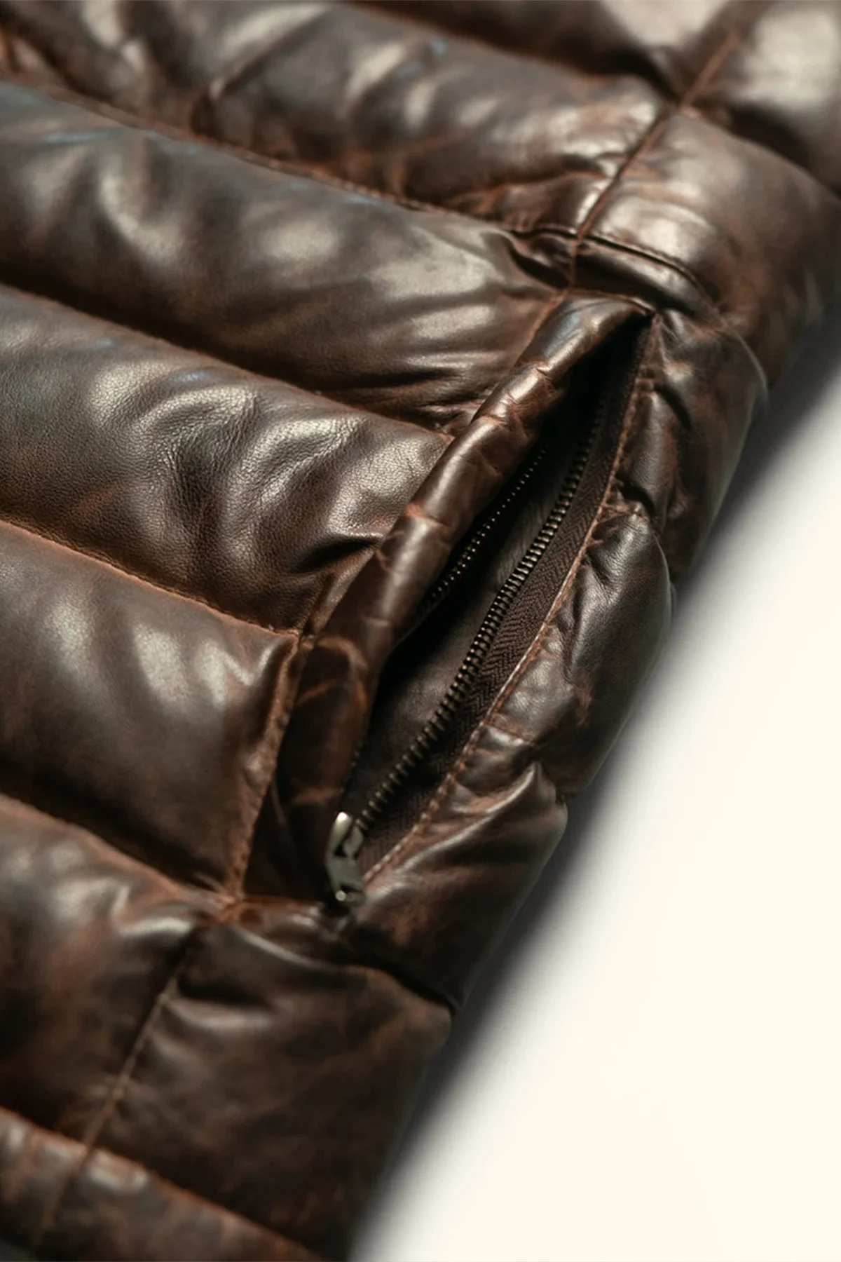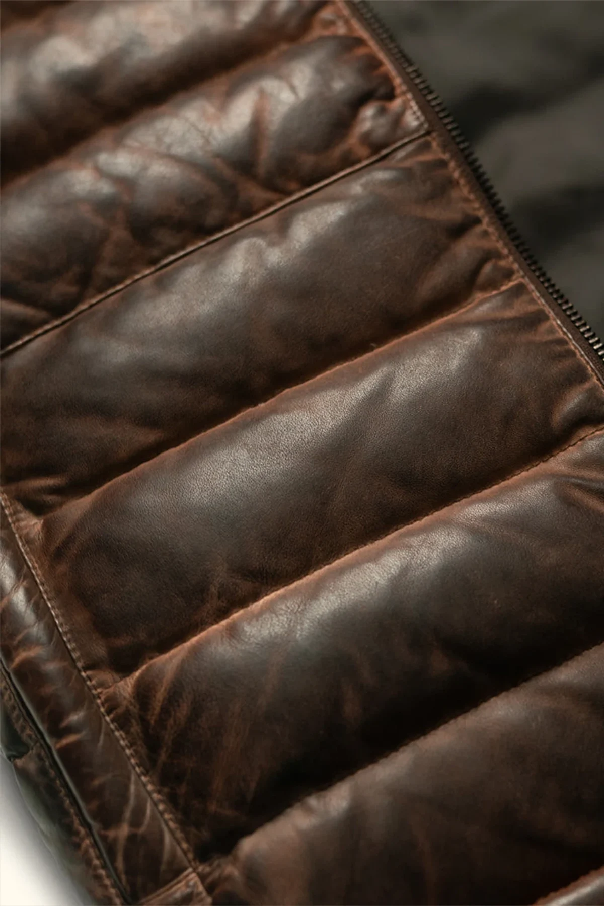 Want to read more about the benefits of soft leather like lambskin? Lambskin is an exceptionally wearable and soft leather. Its natural, lightweight layers give it a distinctive, velvety texture. Even though lambskin leather is thin and lightweight, it still does a good job of keeping out the cold, making it an ideal material for a leather down vest. Because of its delicate structure, lambskin is treated less harshly in production than cowhide and requires more hand manipulation. This often results in lambskin being more expensive than cowhide, which is why it’s generally reserved for premium leather products like our Leather Down Vest.