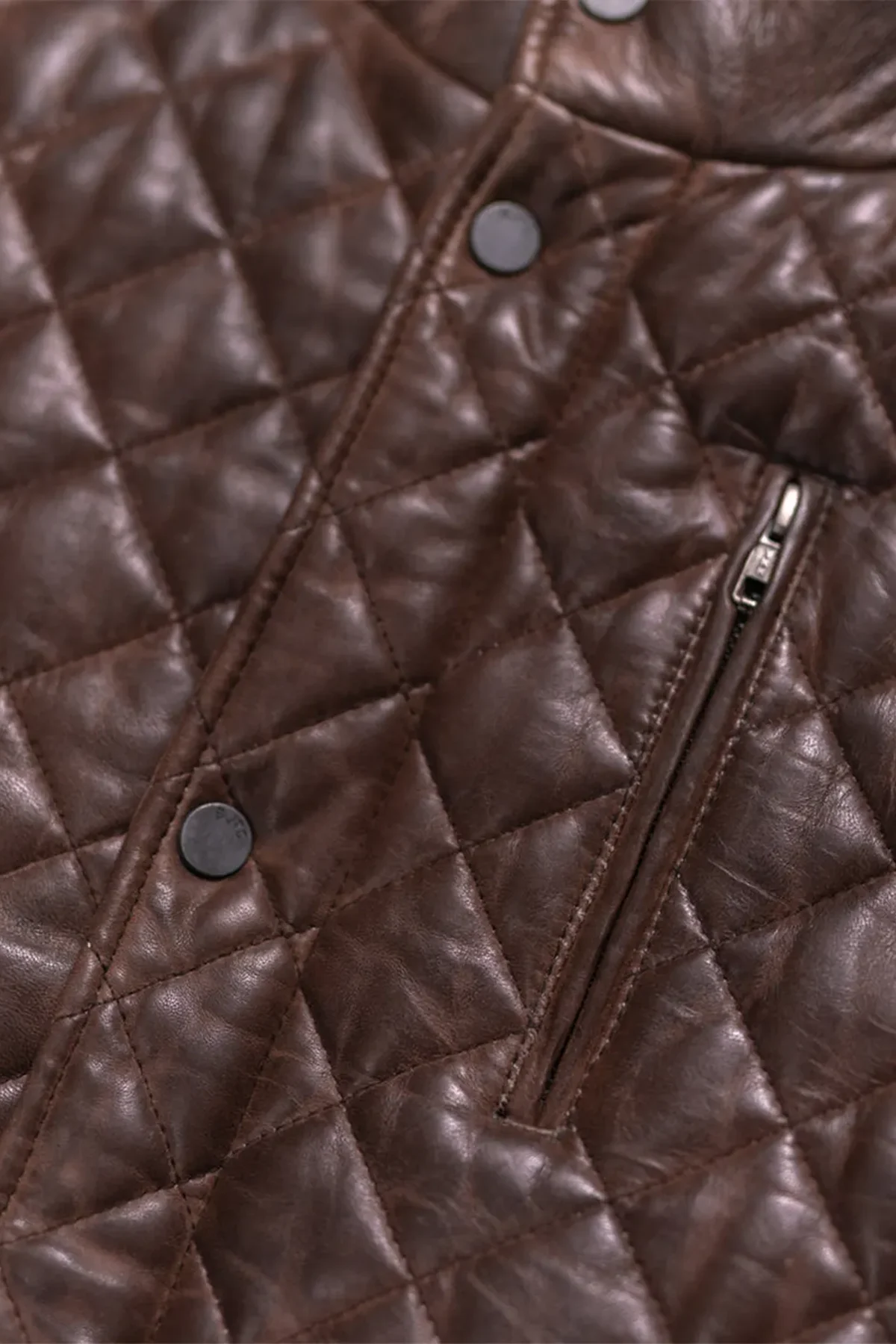 Quilted Leather Jacket Highland Leather Puffer Jacket – Brown