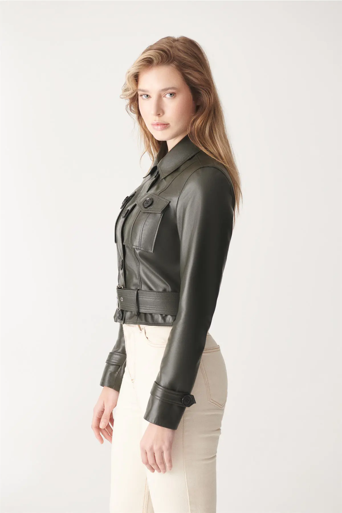 Make a powerful style statement with a Forest Green women leather jacket that refuses to blend in.