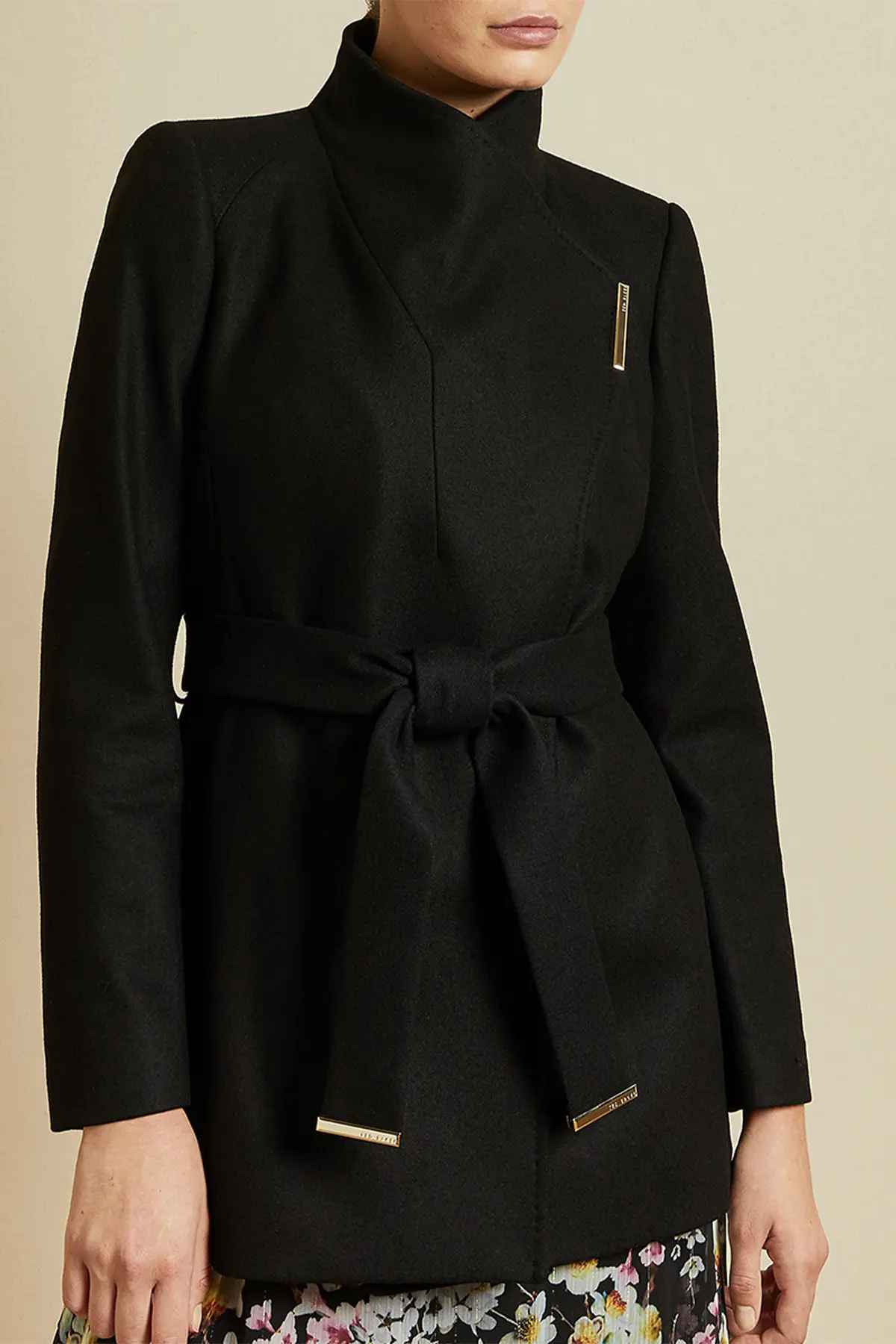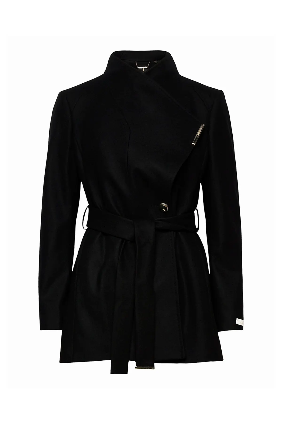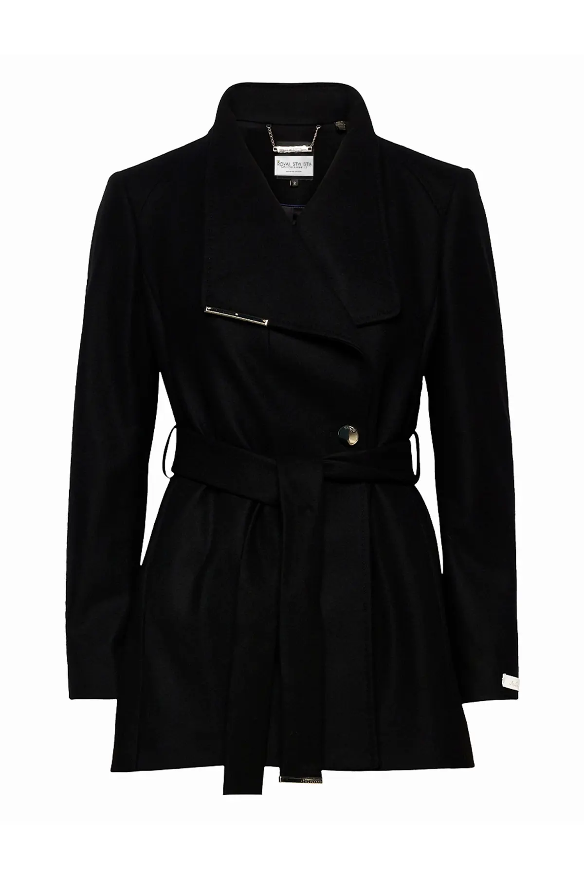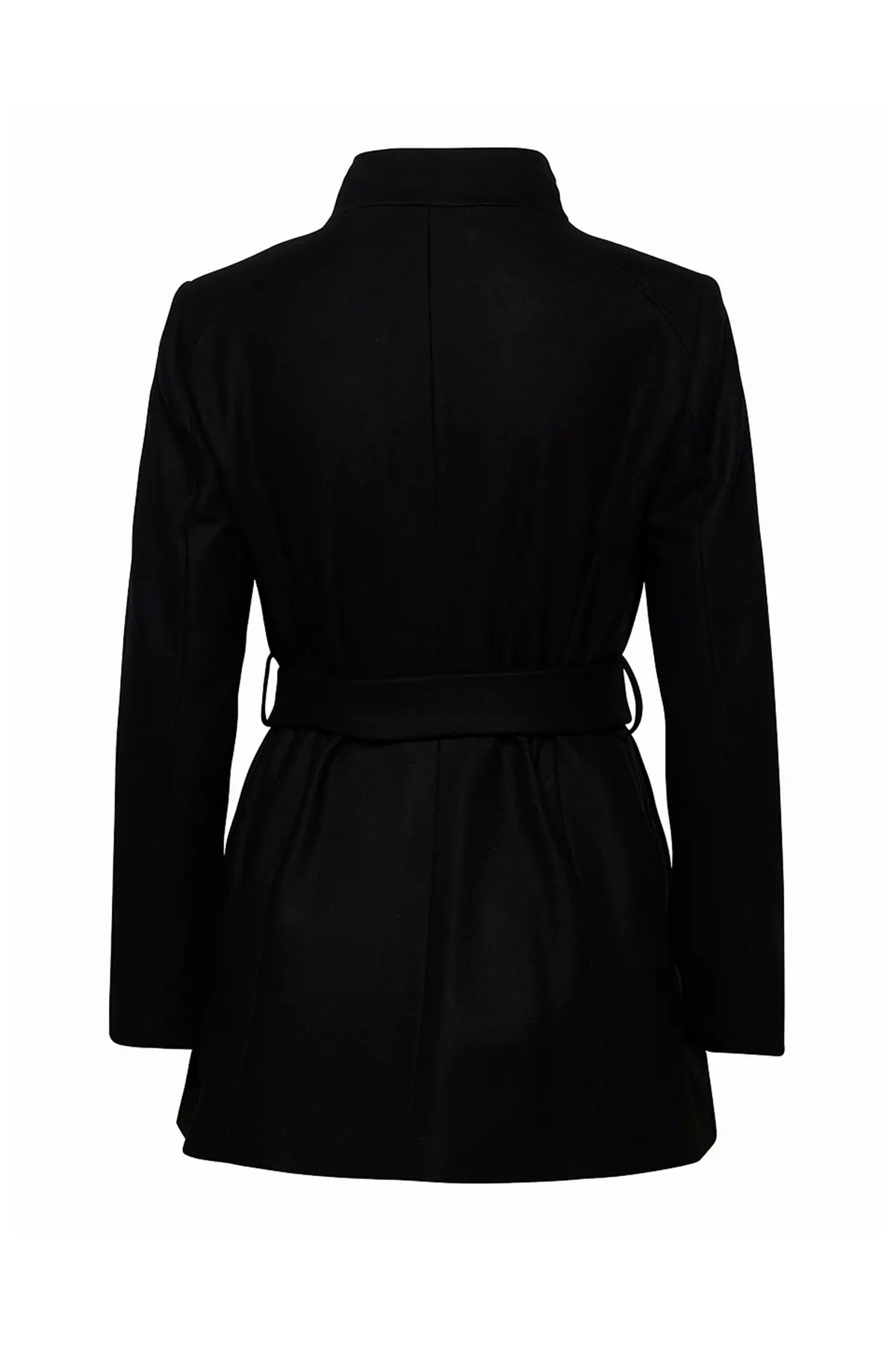 Women Wool Blazer Belted Wrap Coat – Black
