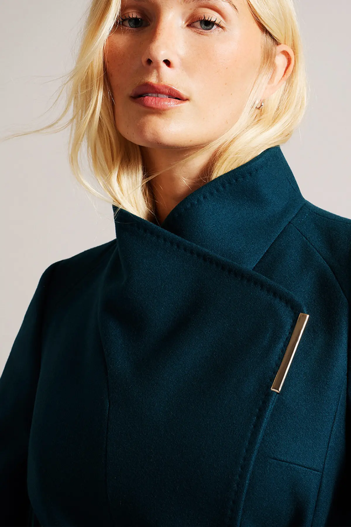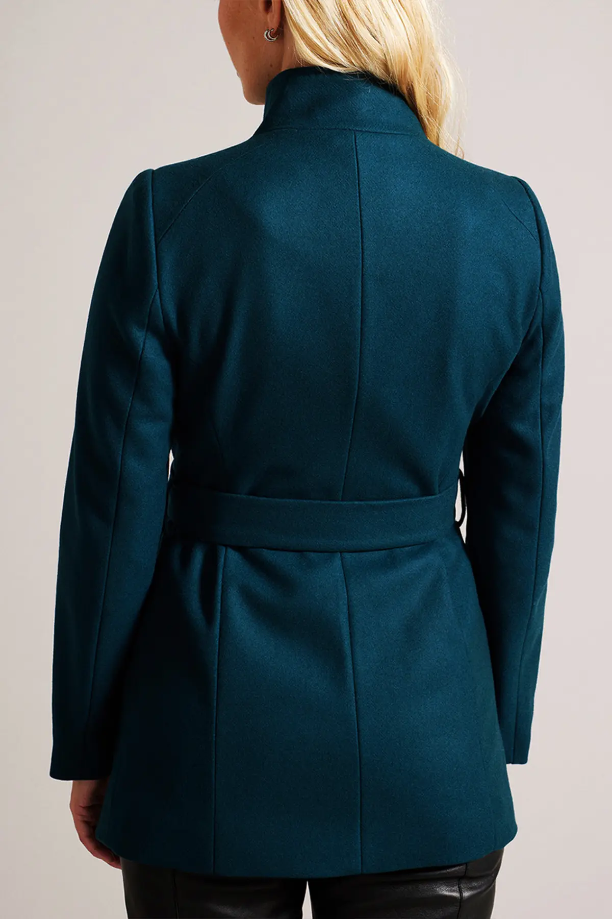 Women Wool Blazer Belted Wrap Coat – Teal